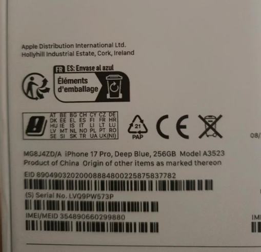 Novo Apple iPhone 17 Pro Deep Blue 256GB