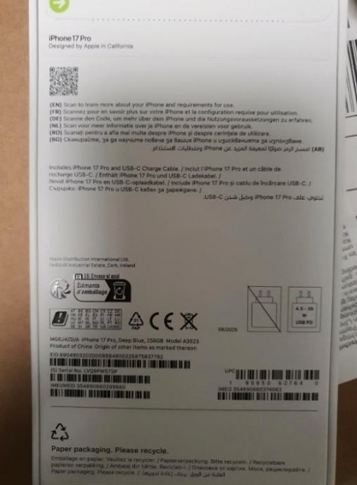 Novo Apple iPhone 17 Pro Deep Blue 256GB