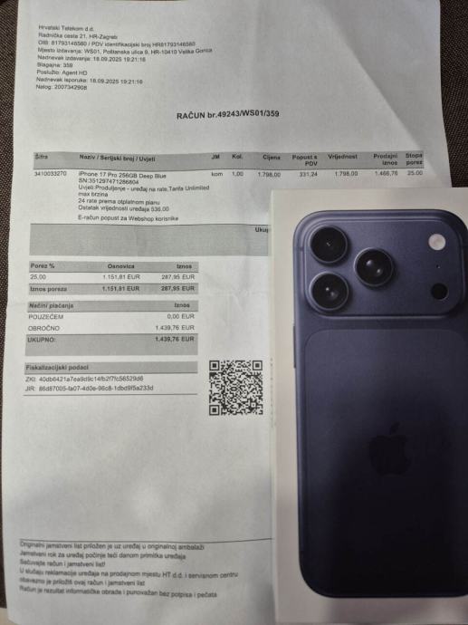 Prodam nov, zapečaten iPhone 17 Pro 256 GB. Nikoli uporabljen. Kupljen v uradni trgovini. Originalen.