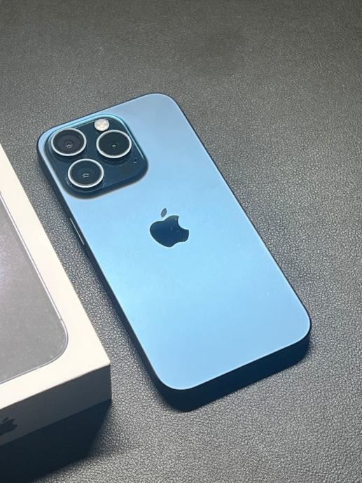 Prodam zelo dobro ohranjen iPhone 15 Pro 256 GB modre barve. Telefon je bil kupljen septembra 2024.
