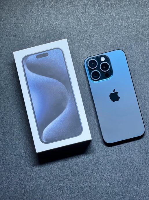 Prodam zelo dobro ohranjen iPhone 15 Pro 256 GB modre barve. Telefon je bil kupljen septembra 2024.