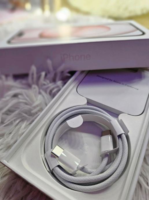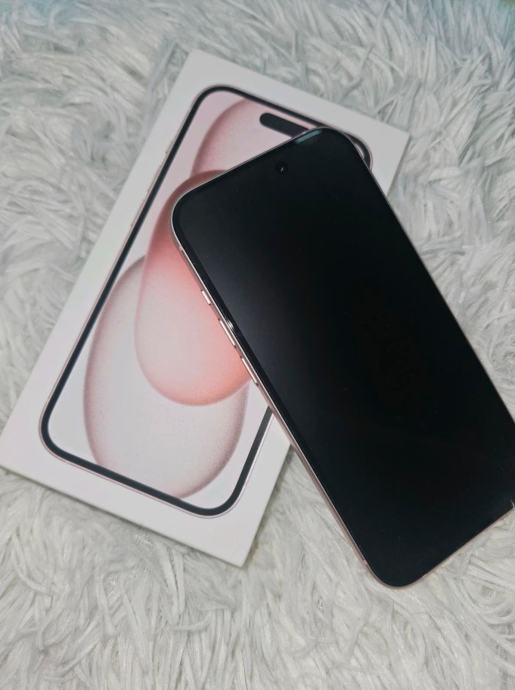 iPhone 15 roza barve, 128 GB, z zaščitnimi MagSafe etuiji in originalnimi dodatki – kot nov!