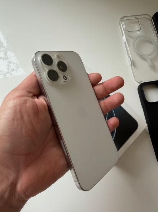 Prodajam svoj iPhone 16 Pro Max v barvi Titanium White s 256 GB pomnilnika. Naprava je v odličnem stanju in je bila vedno zaščitena z zaščitno folijo za zaslon in zaščito za kamero, kar je razvidno na sliki. Baterija je v popolnem stanju, 100 %. V ceno je vključeno več dodatnih ovitkov. Priložen je tudi račun. Če imate vprašanja, mi lahko pišete — z veseljem bom odgovoril!