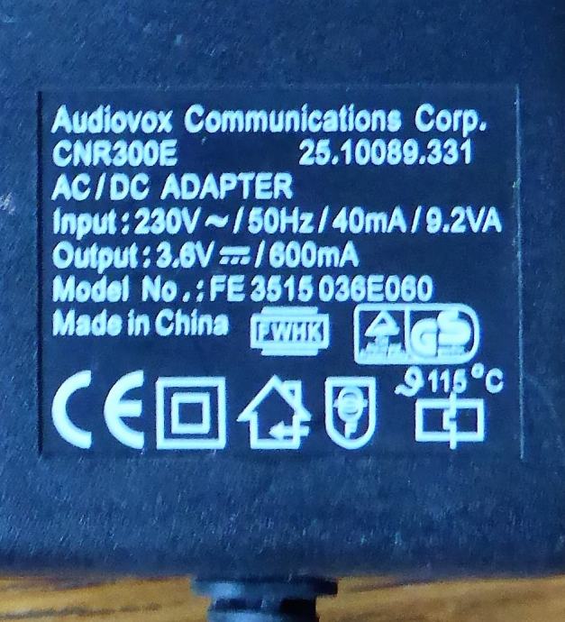 Prodam polnilec Audiovox mobitele GDX-300/300XL.