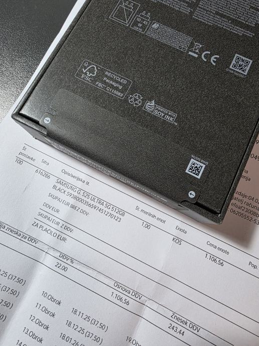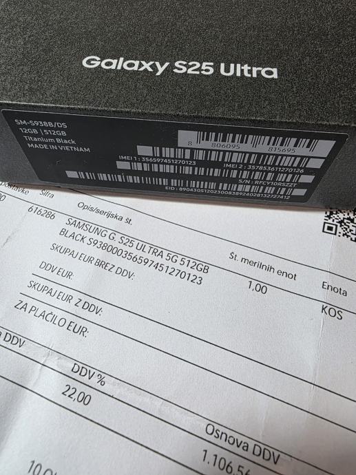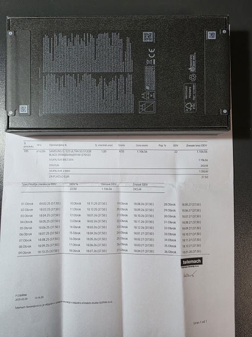 Samsung. Kupljeno pri Telemachu 2025 in ima dvoletno garancijo. Priložen garancijski račun. Škatla je zapečatena in ni bila nikoli odprta. Deluje v vseh omrežjih vseh mobilnih operaterjev.