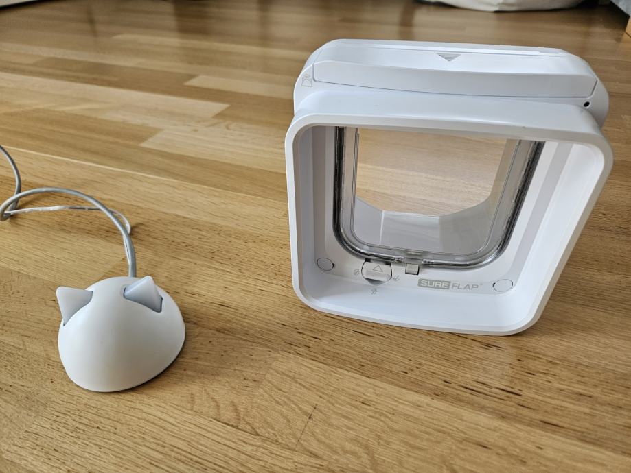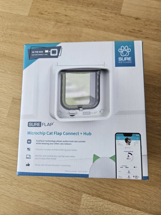 Prodamo SureFlap mikročip mačjo loputo s konektorjem. Uporabljena je bila cca. 1 leto, montirana na notranjih kletnih vratih (ne zunanjih!). Vključuje konektor v obliki mačje glave, ki omogoča v živo prenašanje podatkov na vaš mobilni telefon (Sure Petcare aplikacija za iOS & android). Zraven podarimo nov montažni adapter za steklena vrata ali steno. Več informacij o izdelku na https://www.zoohit.si/shop/macke/macje_mreze_in_lopute/vrata_lopute/za_mikro_cip/726431?activeVariant=726431.6.