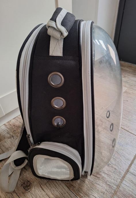 Prodam torbo za prenašanjem mačk z prozornim vizirjem in režami za zrak. Primerno tudi za druge male živali. Za več pokličite 041879660.