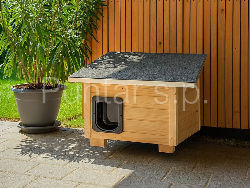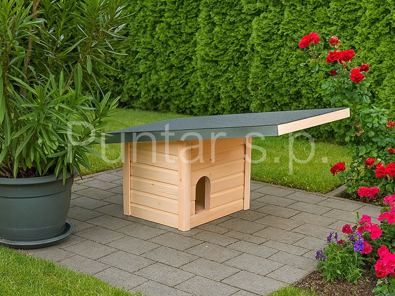 Velikost hišice za eno muco je 60×50 cm + površina strehe