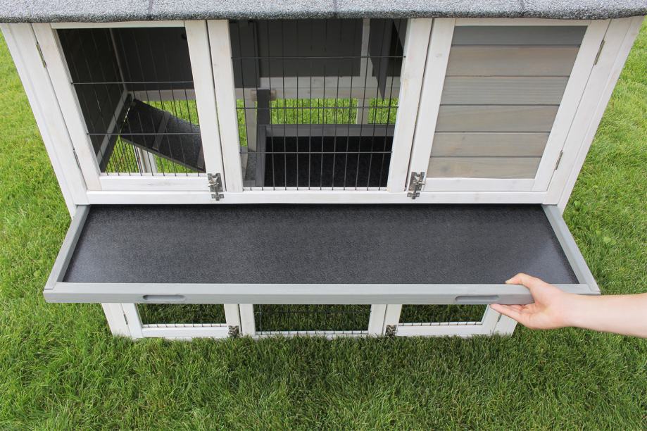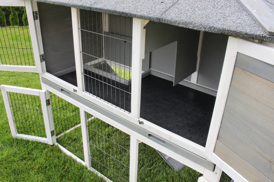 V zajčji kletki bo vaš zajček našel čudovit dom! Dvonadstropna kletka ponuja dovolj prostora za dve majhni vrsti. Dno zajčje kletke je odprto, tako da lahko skačejo po travi. Impregniran les naredi zajčjo kletko odporno na vremenske vplive. Štiri vrata in snemljiva streha omogočajo vam in vašim otrokom enostaven dostop do notranjosti zajčje kletke. Še ena prednost: Izvlečni predal omogoča hitro in enostavno čiščenje iztrebkov.