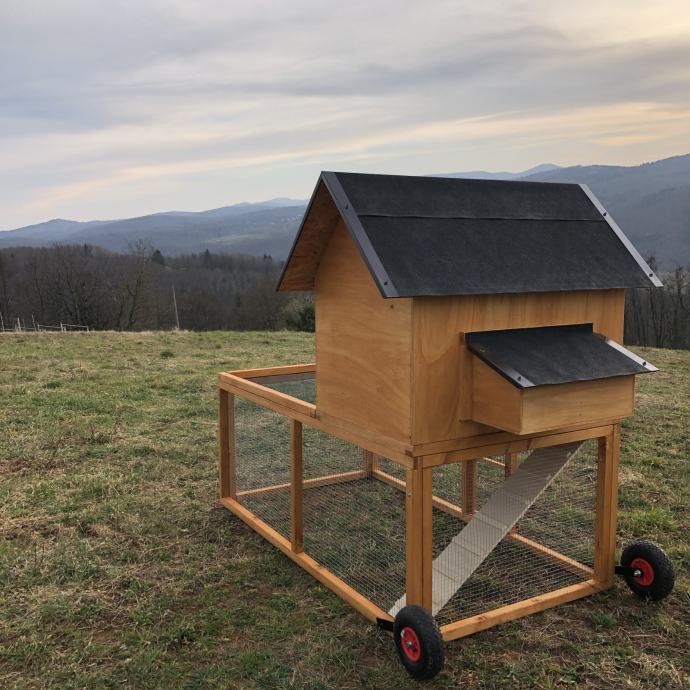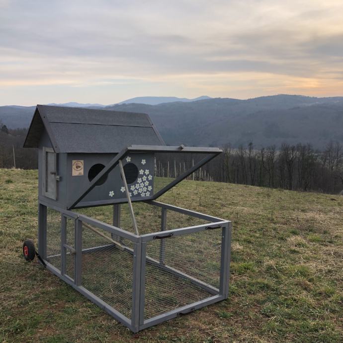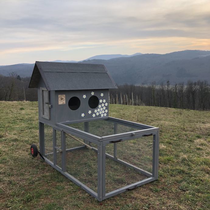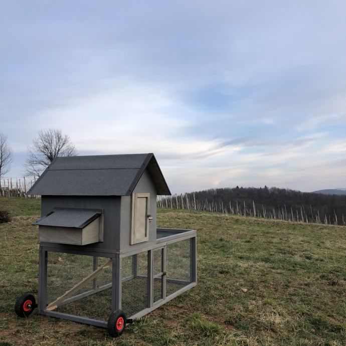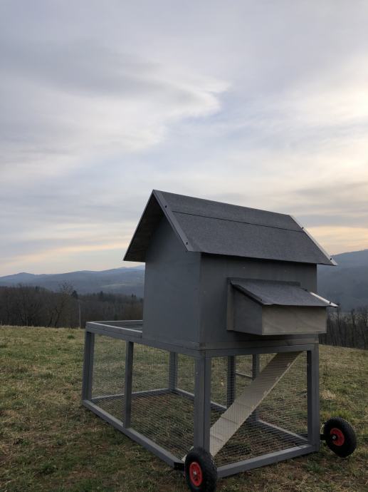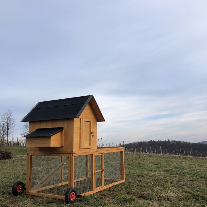 Prodamo premični kokošnjak v SIVI, beli ali rjavi barvi. Primeren za največ 8 kokoši. Po želji kokošnjaku dodamo tematsko poslikavo po vaši želji.