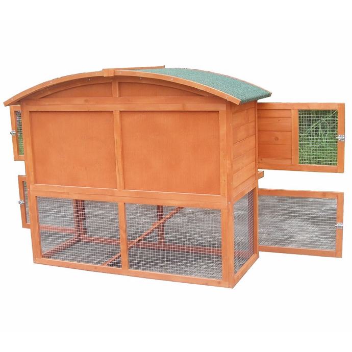 Ta zajčnik je zaradi ovalne strehe prava paša za oči na vsakem vrtu. Zaradi posebne zgradbe je to vidno s skoraj vseh strani. Pred pogledi zaščiten prostor ponuja zatočišče za vaše živali, kamor se lahko kadarkoli skrije. Obe nadstropji je mogoče povezati s priloženo leseno klančino, tako da imajo živali tudi neposreden stik s tlemi. Zajčnik ima 4 krilna vrata, tako da imate vedno dostop.