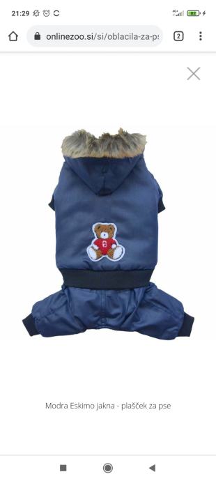 Prodam novo toplo bundico za psa, nam zal premajhna. Dolzina hrbta 31-33 cm