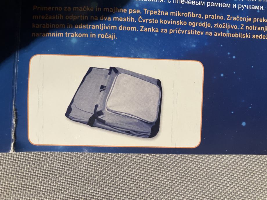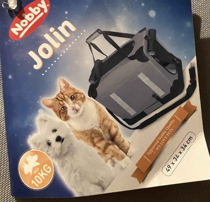 Prodam zelo ohranjeno torbo Nobby Jolin za pse sli mačko do 10 kg. Uporabljena je bila 3x. Možnost ogleda v Portorožu. Mere 49x34x34cm. Pošljem tudi po pošti. Pokličite 041737420.