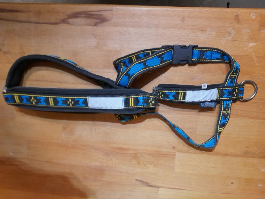 - Dve vprežni pasji oprsnici velikost XL ( nerabljena ), XXL ( rabljena ), primerni za pasme Husky, Aljaški malamut, Samojed...