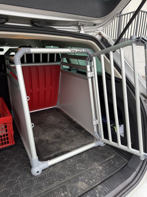 Prodam kvalitetno transportno avto kletko za psa. Kletka je zelo kvalitetne Švicarske izdelave. Je primerljive kvalitete kot Mimsafe.
