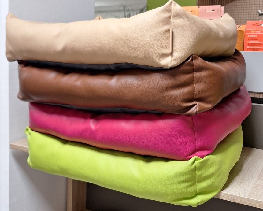 Zaradi zaprtja trgovine prodam ležišča za male/srednje pse iz umetnega usnja 45x55cm z odstranljivo blazino. Zelo enostavno se čisti z mokro krpo.