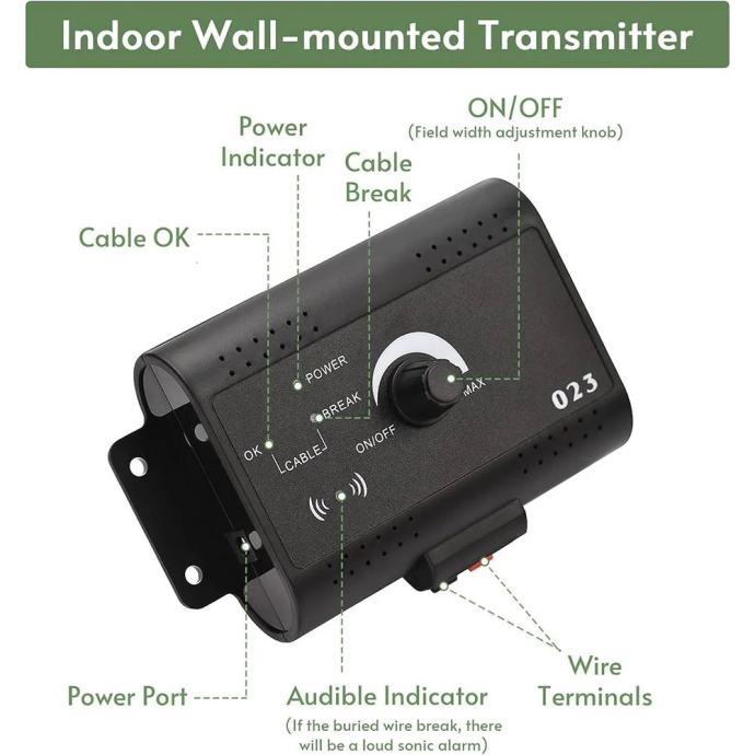 Sistem ograje za pse ponuja najhitrejši in najpreprostejši način,da svojega psa obdržite na vašem posestvu.Model je vodoodporen in ga je mogoče polniti.V modelu poleg oddajne postaje in sprejemnika prejmete tudi 300m žice in zastavice