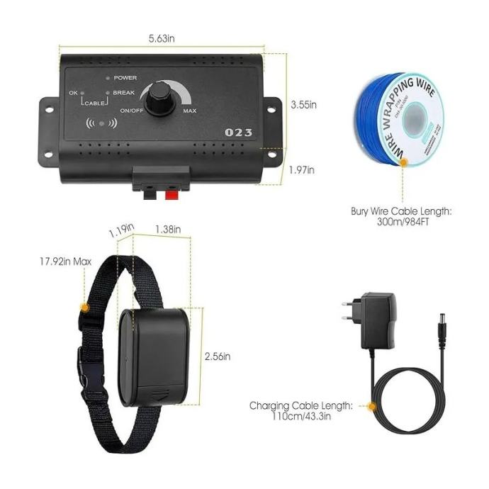 Sistem ograje za pse ponuja najhitrejši in najpreprostejši način,da svojega psa obdržite na vašem posestvu.Model je vodoodporen in ga je mogoče polniti.V modelu poleg oddajne postaje in sprejemnika prejmete tudi 300m žice in zastavice