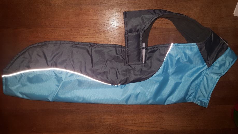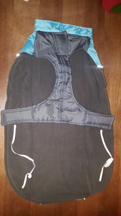 Prodam nikoli nošeno bundo za pse (naročili smo napačno velikost). Spodaj podložena s flisom, zgoraj nepremočljiva. Ima odsevne robove.
