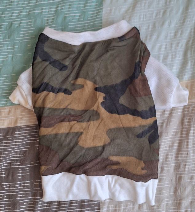 Prodam pasjo majico v barvi kamuflaže, velikosti M/L (primerno za shi-tzu, bišon ali podobno), novo. Cena s poštnino.