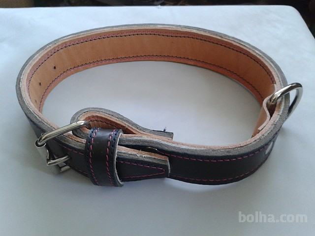 Pasja ovratnica, usnjena, zelo močna iz troslojnega usnja, nastavljiva dolžina-obseg 55 do 65 cm.