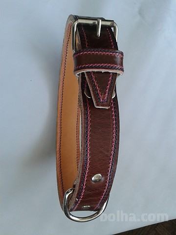 Pasja ovratnica, usnjena, zelo močna iz troslojnega usnja, nastavljiva dolžina-obseg 45 do 55 cm.