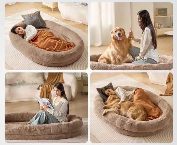 Pasja postelja nudi vam in vašemu hišnemu ljubljenčku prijeten prostor za počitek, kjer se lahko stisnete drug k drugemu in okrepite svojo vez. Ta postelja za odrasle pse je prekrita z mehkim umetnim zajčjim krznom in podložena s peno za vzmetnice. Montaža ni potrebna! Pasja postelja je pripravljena za uporabo takoj iz škatle, potem ko ponovno pridobi svojo obliko. Prevleka je opremljena z ročaji in žepi za priročnost in jo je mogoče odstraniti in oprati, da jo lahko ponovno uporabite.