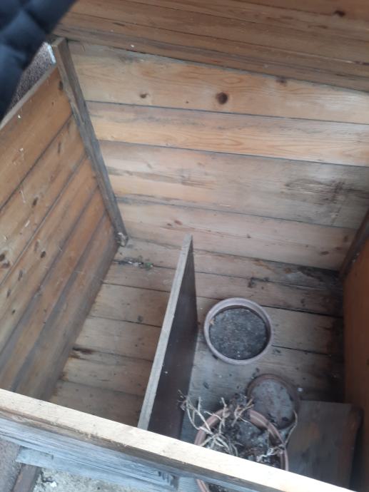 Prodam pasjo uto - hiško dimenzij 105cm x 95cm in višine 80cm na nižjem delu brez dna - podna. Za psa srednje rasti. Narejena je bila za v kot, kot je razvidno iz slik, kar pomeni da je iz vidnih strani opaž v obliki brun, ostali dve strani pa so dile. Streha se samo dvigne. Ima pregrado da se lahko skrije če piha. Za lepši izgled potrebna barvanja.
