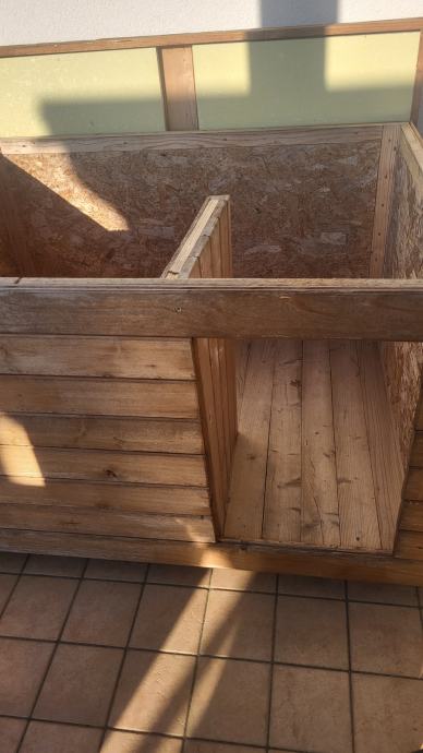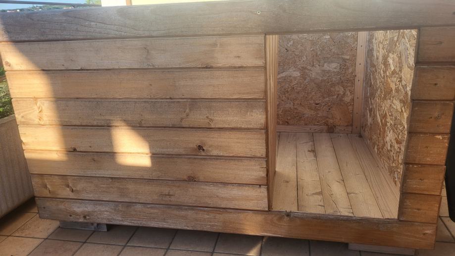 Uta je dvignjena od tal in razstavljiva, streha je ravna. Primerna je za pse srednje velikosti, npr. skotski ovcar.
