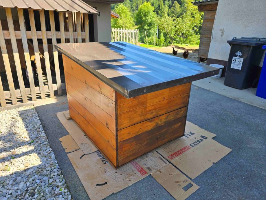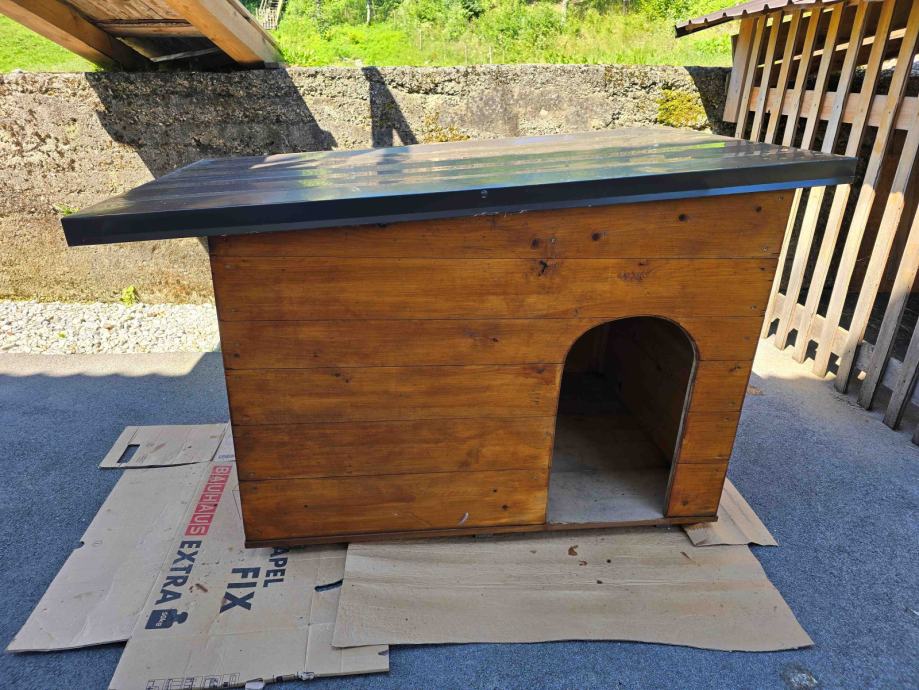 Prodam lepo ohranjeno leseno pasjo uto. Dolžina = 130 cm, širina = 97 cm, višina 1= 90 cm, višina 2 = 100 cm.
