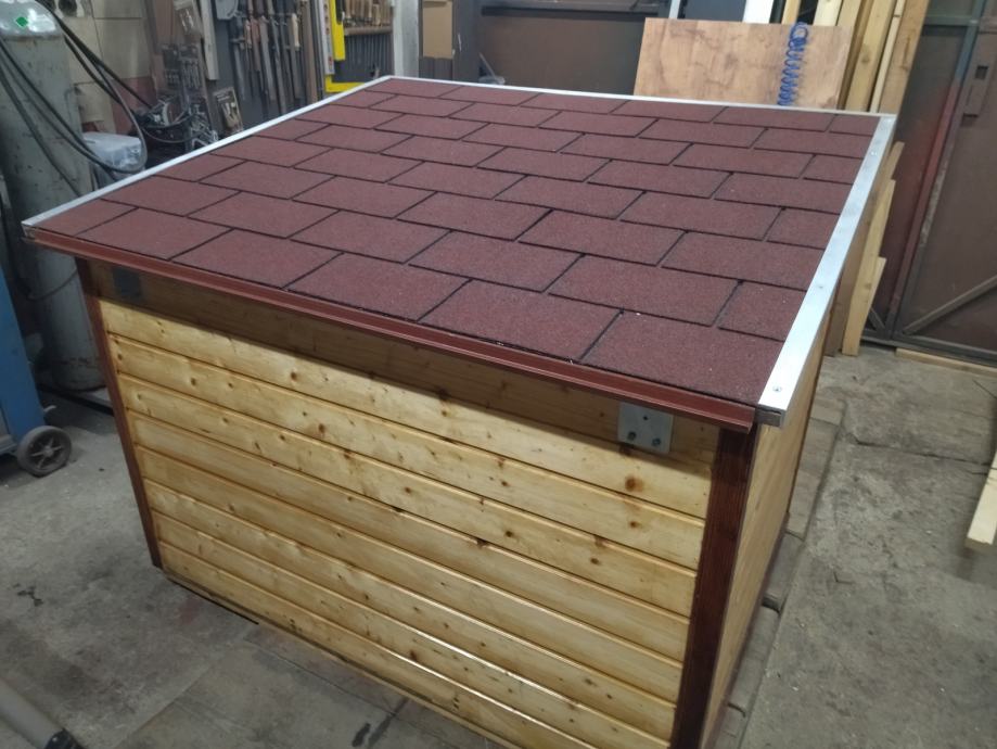 ---Streha pokrita z bitumensko kritino in se odpira zaradi lažjega čiščenja.