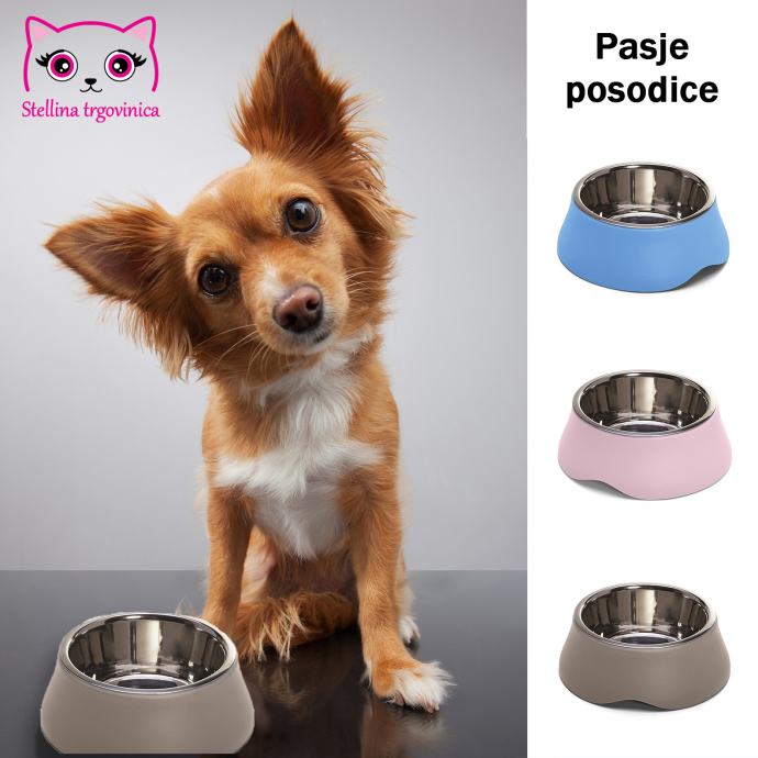 Pasje posodice so izdelane iz dveh delov. Zunanji del je iz plastike, v notranjosti pa se nahaja posodica iz nerjavečega jekla, ki se jo lahko vzame ven. Posodice so enostavne in priročne za čiščenje, visok rob pa preprečuje polivanje. Zunanji plastični del posodice ima protidsno podlogo.
