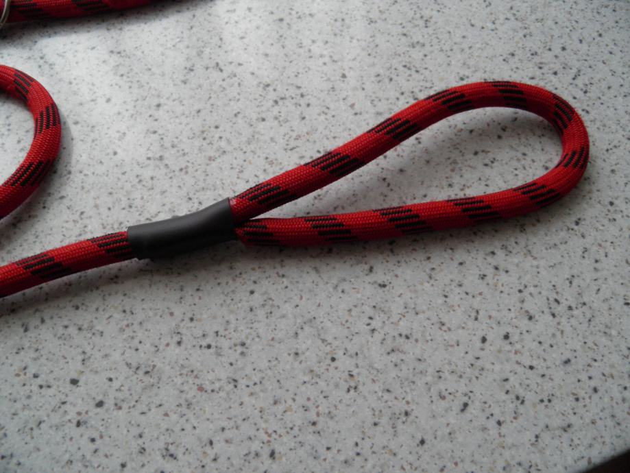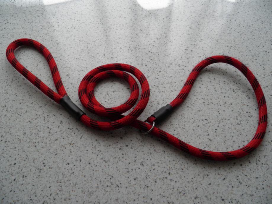Pasji povodec na zanko, po vzoru pasjega dreserja Cesar Milana, izdelan iz kvalitetne plezalne vrvi debeline 10mm in inox obročkom. Dolžino povodca lahko prilagodim vašim željam.