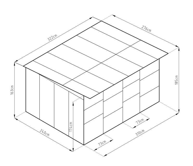 Dimenzije - notranje (Š x V x G): 310 x 159 x 240 cm