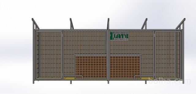 Cevna kovinska konstrukcija: masivna konstrukcija iz kvadratnih cevi 40x40 mm in pokončnih okroglih cevi 3/8 (premer 18 mm) razmak med cevmi je 7 cm. Kovinska konstrukcija je vroče cinkana.