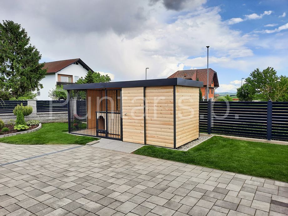 Okoli strehe so aluminijaste obrobe. Streha ima tudi žleb.