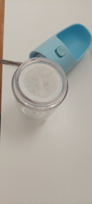 V bidonček Dogness gre 300 ml za to flaško se lahko menjujejo tudi filtri za vodo in v drugo s črnim pokrovom 500 ml vode ki jo zelo praktično zliješ nazaj .