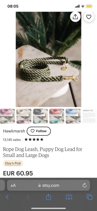 Prodam popolnoma nova vrvnata povodca dolžine 117 cm.