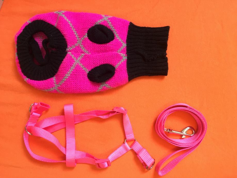 Prodam: zeleno oprsnico za mladička povodec dolg 1,6 15eur modro ovratnico za bišona in povodec dolg 1,30cm 15 eur črn povodec 120cm 5 eur, roza oprsnica in povodec ter oblačilo za mladička skupaj 12 eur.
