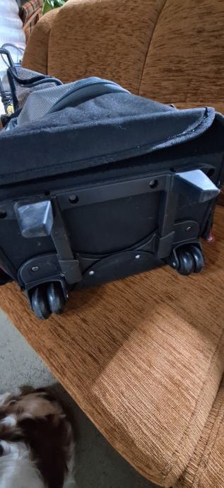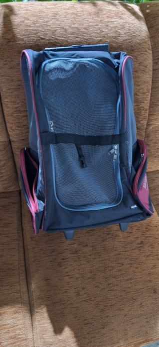 Pasja torba ima koleščke in naramnice, zato jo lahko vozimo ali nosimo.
