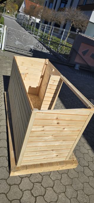 Pasja uta ni izolirana jo pa lahko naknadno po želji izoliram. Uta je polakirana z lakom za zunanje podnebne vplive. Opremljena je tudi z led lučko, ki sveti ob premiku 30sc. Pasja uta ima snemljivo streho.