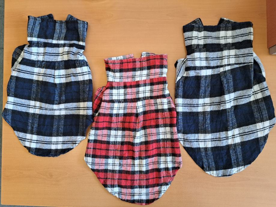 Prodam vse tri srajce za pse,velikost XL, pes nam je poginil. Dolžina od vratu do repa 36cm.