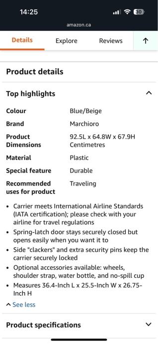 Več podrobnosti tukaj: https://www.amazon.ca/Marchioro-Cayman-Clipper-Carrier-36-5x25-5x26-75/dp/B0040R8NTY