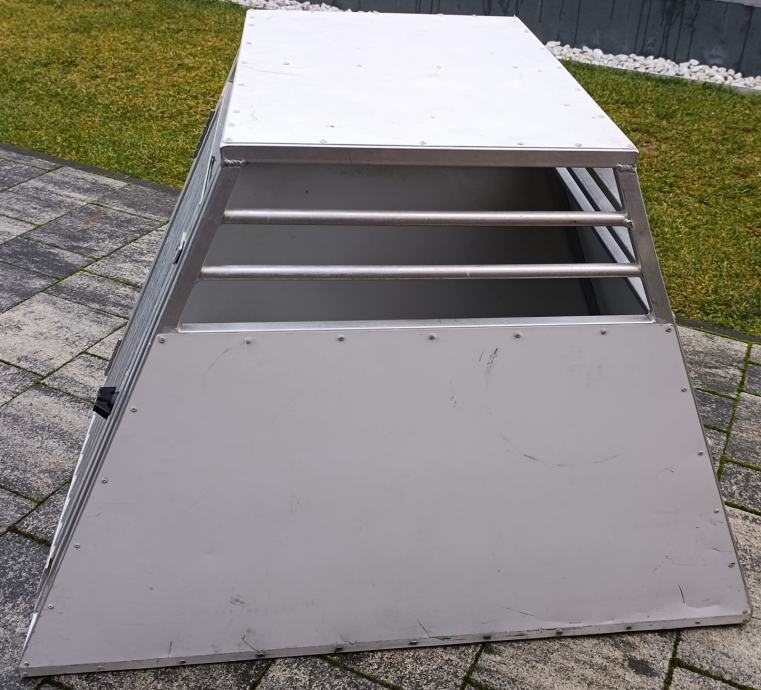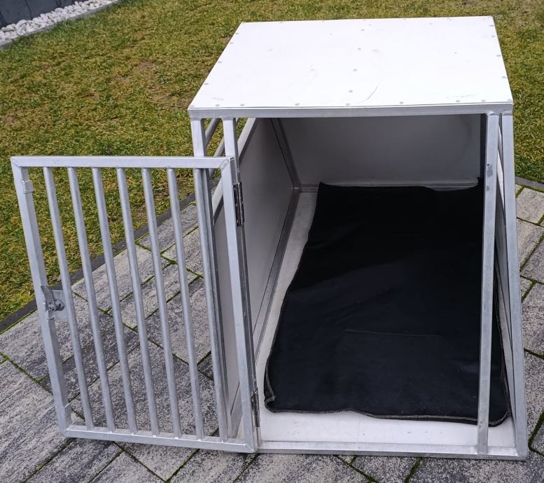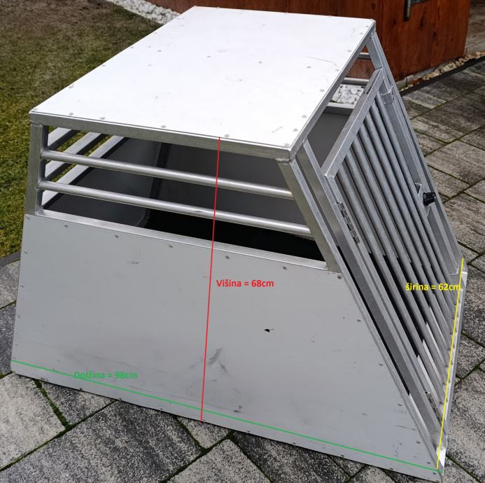Prodaja se po meni narejen aluminijasti boks za psa sledečih dimenzij (vidno tudi na sliki):