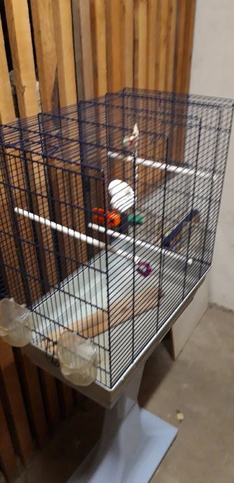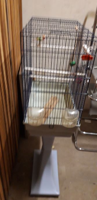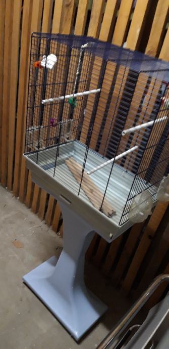 Prodam kletko za ptice, modre barve, s podstavkom. Mere kletke: v × š x g = 50 x 50 x 30 cm. Višina podstavka je 73 cm.