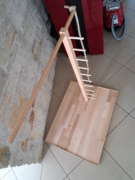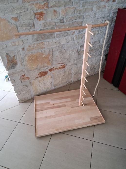 Prodam skoraj nič rabljeno stojalo za papagaje iz bukovega lesa. Podstavek je velikosti 60x80 cm, višina 100cm. Papige lahko na stojalo priletijo ali pa splezajo po priročni lestvi ali debelu vrvi iz naravnih vlaken. Stojalo je na kolesih kar olajša premikanje po hiši.
