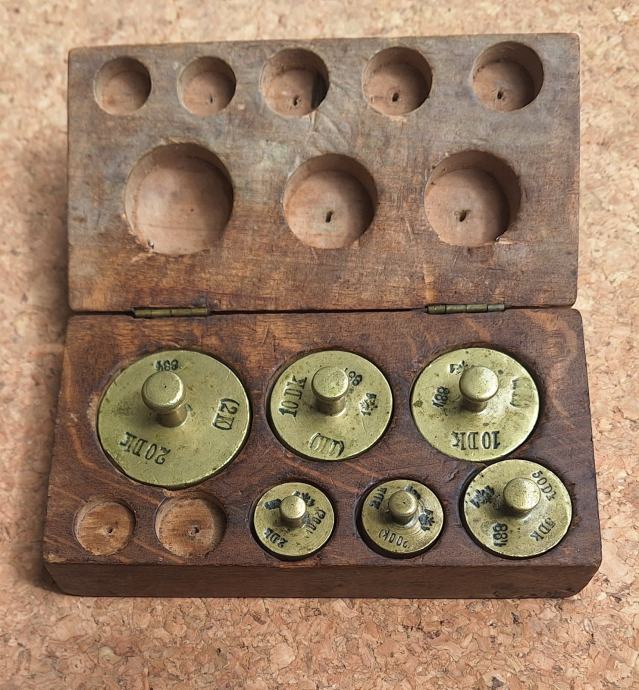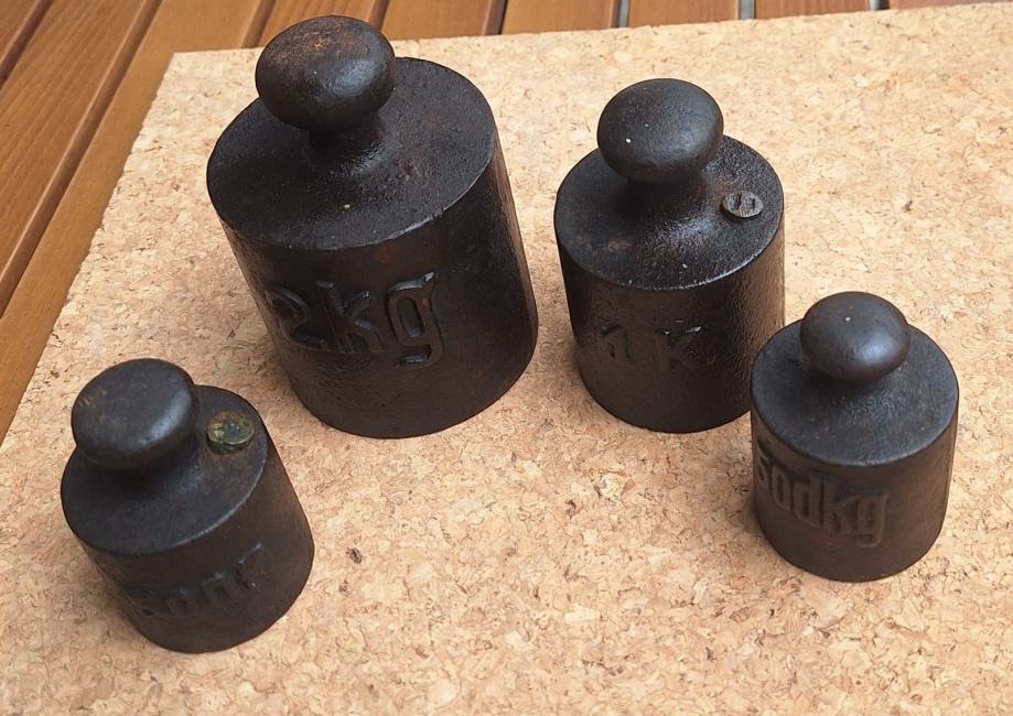 Bolj za novoletno šalo in za spomin na stare trgovine, prodam štiri železne uteži (2kg,1kg, in 2x0,5kg) ter set medeninastih uteži 20g, 2x10g, 5g in 2x 2g v originalni škatli za 25 EUR. Samo resne ponudbe na e-pošto dazomax@gmail.com