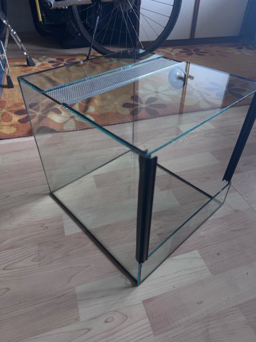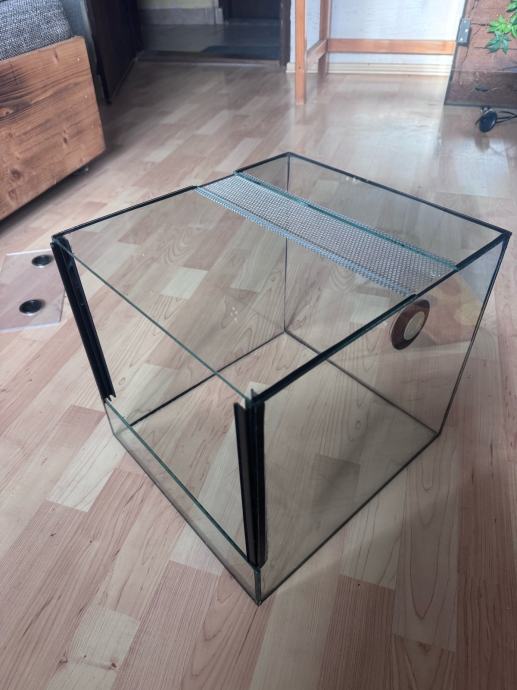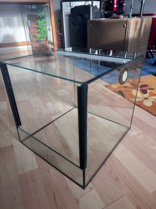 Prodam steklen terarij v velikosti cca 30x30x30. Terarij nima sprednjega stekla ker se je razbilo.