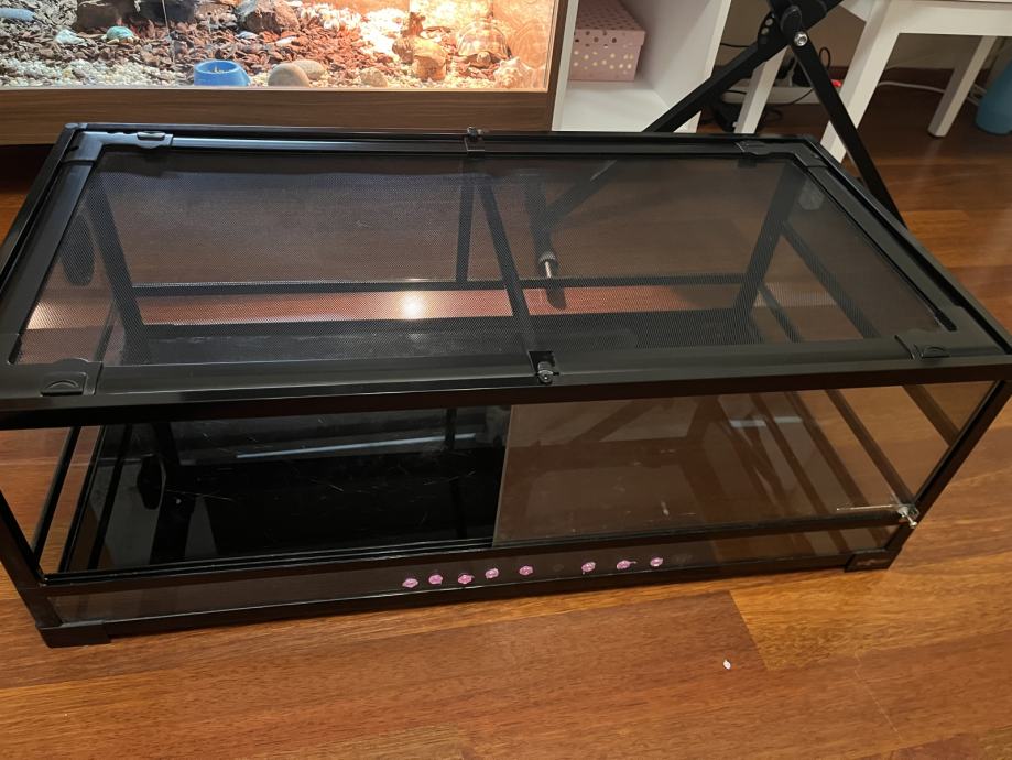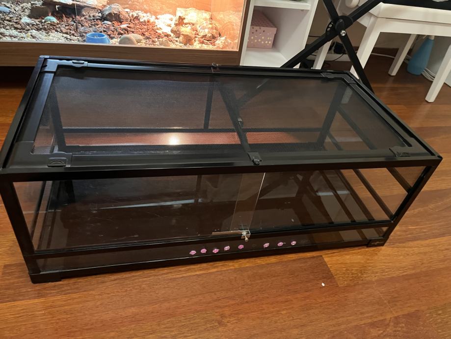Prodamo leto pa pol rabljen aluminijasti terarij, za želvico. Zelo lepo ohranjen velikosti 92x46x32