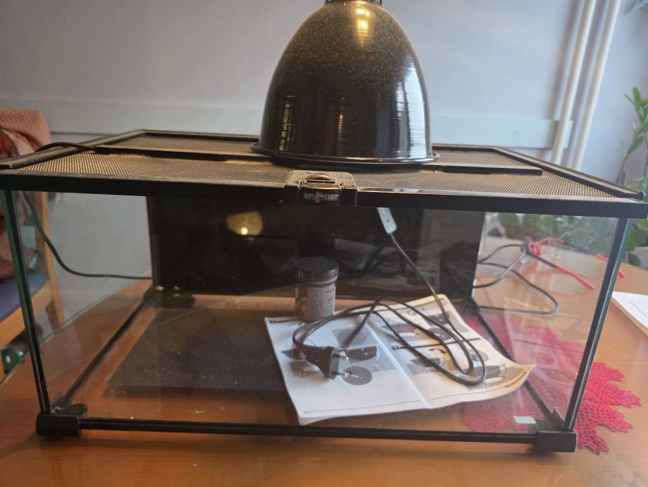 38.5 litrski terarij z ogrevanim dnom in aluminijasto lučko (ĺĺžarnica UVB).